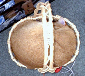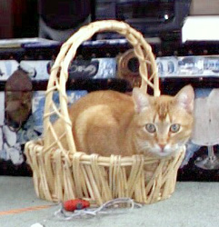 His names are as follows: Tiki, Bogie, Frisky, Jumper, Stripey, Fluffernutter, The Fluffmeister, Thunderpussy, Poopie, and A.B. the Ankle Biter. He doesn't answer to any of them however.