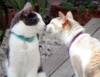 Kaeli & Mikey are part of my greater family. I live with my parents in El Monte, California. Incase you couldn't tell, I am Sabi, the grey and white cat. My littermate, aka sister, is Kaeli. She likes to sleep a lot and eat my food when I'm not looking.